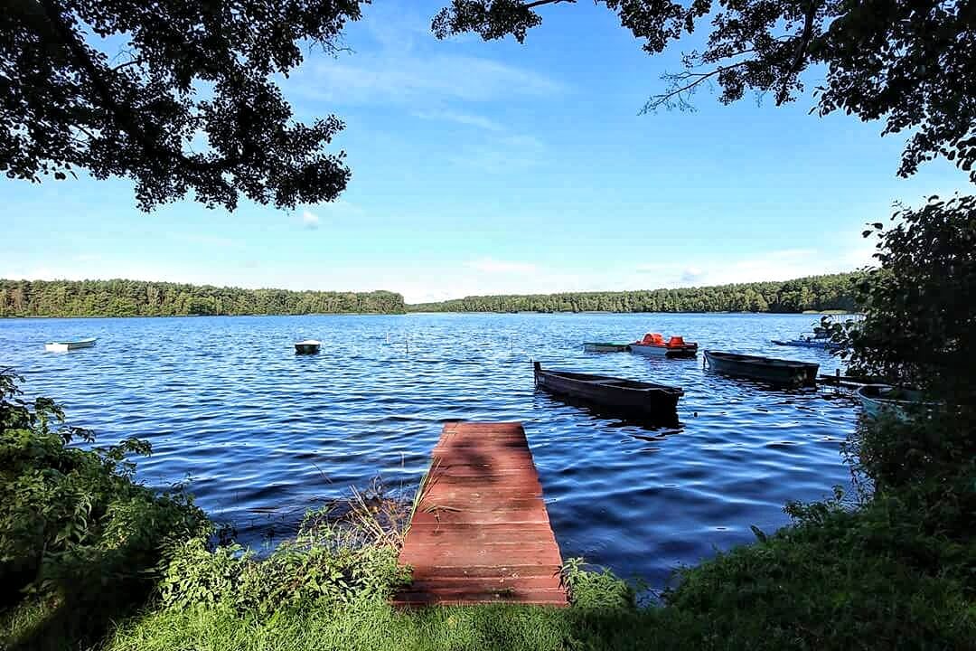 This area is popular with tourists, with many people staying in cabins in the wood by the lake.